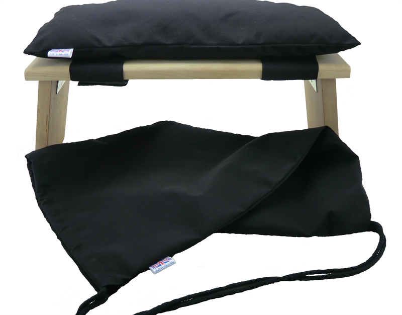 Meditation Stool/Bench Seiza + Cushion + Bag ,Organic Kapok Filled,folding legs, British Alder wood, handcrafted, 48 x 17 cm, Carry Bag size 61 x 31 cm